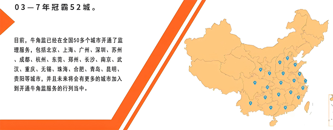 牛角监成立于2016年,以“让天下装修没烦恼”为公司使命,“只做监理不推销”是公司核心原则。牛角监拥有国家级的监理资质,监理服务覆盖了数十城市,已经成为广受行业、消费者的认可和尊重的领头牛企业。